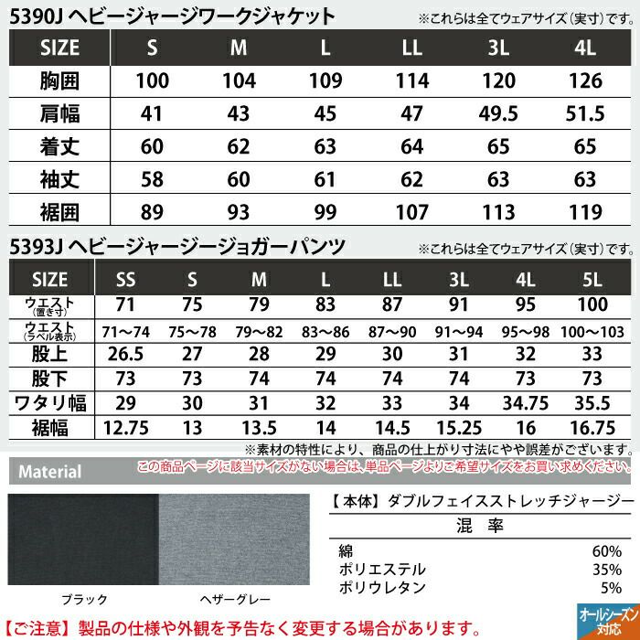 アイズフロンティア 作業服 作業着 作業ズボン アイズフロンティア 作業服 上下セット 5390J ヘビージャージワークジャケット と 5393J ヘビージャージジョガーパンツ 秋冬用