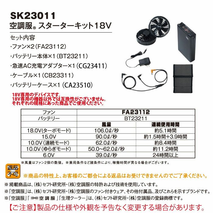 空調服 自重堂 作業服 作業着 空調服 自重堂 作業服 SK23011 空調服スターターキット18Vワンタッチファン F 作業着 春夏用 熱中症 レジャー アウトドア スポーツ