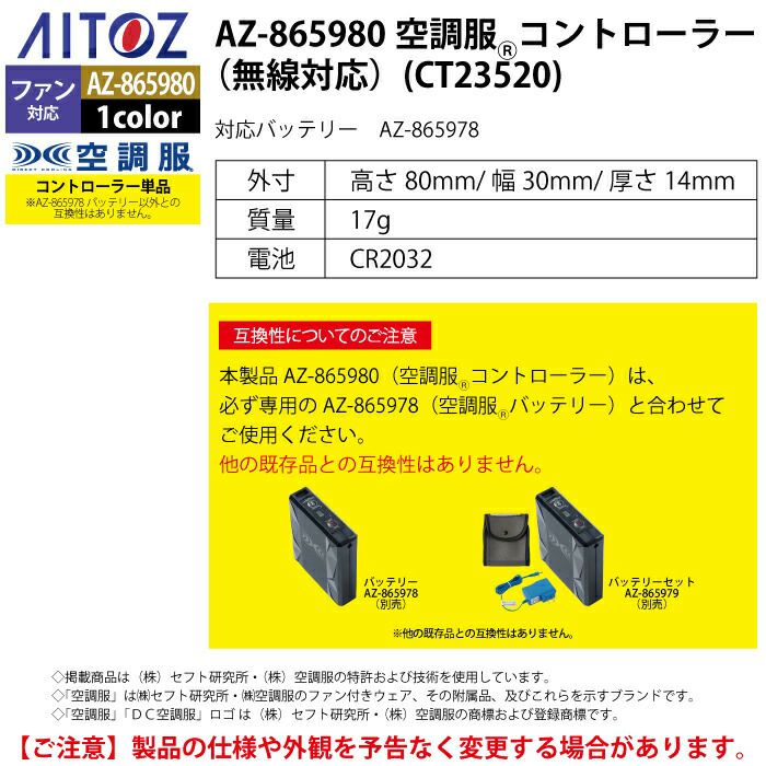 AZ-865979 空調服バッテリーセット無線対応BT23222