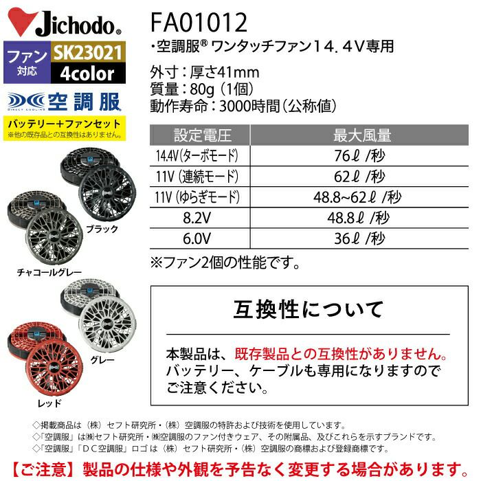 FA01012 空調服14.4V専用ワンタッチファン