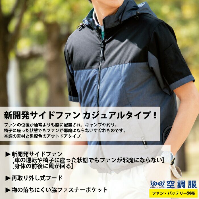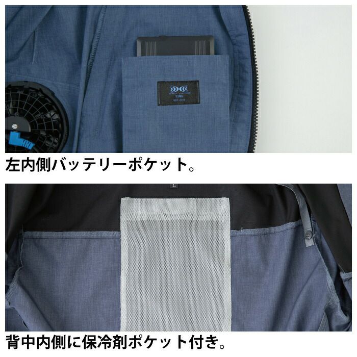 ◇この商品は従来空調服よりファンの位置が脇側に配置されています。3L以上を着用される場合はロングケーブル(CBB500またはCB01021)をご使用ください