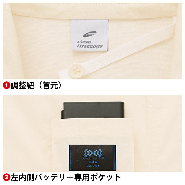 ●関連商品※SKSP01Jパワーファン対応スターターキット※FANCB2BJワンタッチファンケーブルセット※LIURTRA1Jリチウムイオン大容量バッテリーセット●春夏用●素材:ブロード●混率:ポリエステル65%・綿35%[フロント]樹脂ファスナー、[ボタン]金属ボタン●調整紐(首元)、左内側バッテリー専用ポケット、保冷剤用メッシュポケット、背ネーム、裾ドローコード、インナーガード(二重裾)インナーガードを留めることによって空気の漏れを防ぎます、ダックテール(かがんだ時に背中が出ないよう後ろ丈を長めにしています)●サイズ:M、L、LL●カラー:ネービー、オフホワイト