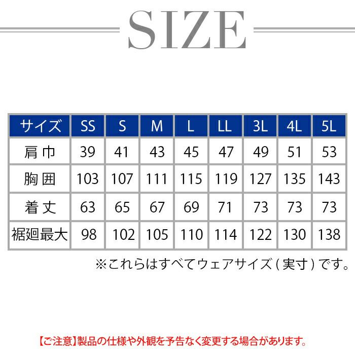 ●春夏用●素材:高密度ミニリップ●混率:ポリエステル100%、樹脂ファスナー●男女兼用、[フード]取り外し式フード(スピンドル調整付き)、[右胸]ファスナーポケット・ペン差し、[両脇]ファスナーポケット、[袖口]ニットバインダー仕様で空気が逃げにくい、[裾]内側スピンドルで裾調整、[首元]調整ヒモで空気の抜けを調節、[左内側]バッテリーポケット、右胸ポケット(巾14cm×深さ23cm)●サイズ:SS(肩巾/39、胸囲/103、着丈/63、裾廻最大/98)、S(肩巾/41、胸囲/107、着丈/65、裾廻最大/102)、M(肩巾/43、胸囲/111、着丈/67、裾廻最大/105)、L(肩巾/45、胸囲/115、着丈/69、裾廻最大/110)、LL(肩巾/47、胸囲/119、着丈/71、裾廻最大/114)、3L(肩巾/49、胸囲/127、着丈/73、裾廻最大/122)、4L(肩巾/51、胸囲/135、着丈/73、裾廻最大/130)、5L(肩巾/53、胸囲/143、着丈/73、裾廻最大/138)●カラー:シルバーグレー、サンドベージュ、グリーン、クロ