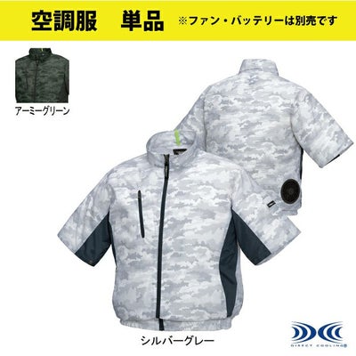 ●関連商品※XE98005※XE98006●春夏用●素材:エアコンテックTM●混率:ポリエステル 100%●特徴:右胸ポケット(巾14cmx深さ24cm)、樹脂ファスナー、左袖ペン差し、右胸ファスナー付きポケット、両脇ポケット、衿裏配色テープ、袖底 脇に配色使用、首元調整紐で空気の抜けを調節、左内側バッテリーポケット、袖口ドットボタンで空気の抜けを調整●機能:透湿性、撥水加工、紫外線カット●取り扱い上のご注意:炎天下の車内等(高温の場所)に放置しないよう、ご注意ください。羽が折れる場合がある為、エアーガンによるファンの清掃は行わないでください。専用バッテリー以外は使用しないでください。故障や事故の原因になります。この素材は、火気に弱いので扱う現場では着用しないでください。 ●サイズ:SS(肩巾/43、胸囲/106、袖丈/23、着丈/63、裾廻/67、裾廻最大/95)、S(肩巾/45、胸囲/110、袖丈/24、着丈/65、裾廻/72、裾廻最大/100)、M(肩巾/47、胸囲/114、袖丈/25、着丈/67、裾廻/77、裾廻最大/105)、L(肩巾/49、胸囲/118、袖丈/26、着丈/69、裾廻/82、裾廻最大/110)、LL(肩巾/51、胸囲/122、袖丈/27、着丈/71、裾廻/87、裾廻最大/115)、3L(肩巾/53、胸囲/130、袖丈/28、着丈/73、裾廻/92、裾廻最大/120)、4L(肩巾/55、胸囲/138、袖丈/29、着丈/73、裾廻/97、裾廻最大/125)、5L(肩巾/57、胸囲/146、袖丈/29、着丈/73、裾廻/102、裾廻最大/130)●カラー:シルバーグレー、アーミーグリーン