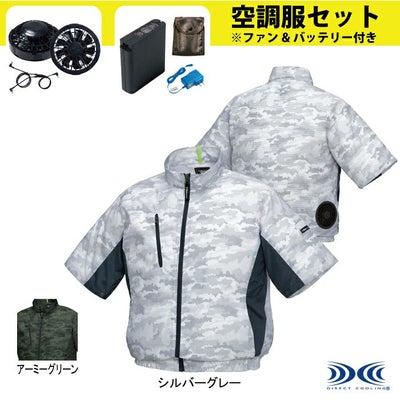 空調服 電動ファン 作業服 XEBEC 空調服 電動 ファン対応 春夏用 ジーベック 作業服 作業着 XE98006S 迷彩半袖ブルゾンファンとバッテリセット SS-5L 空調服 作業服 作業着 春夏用