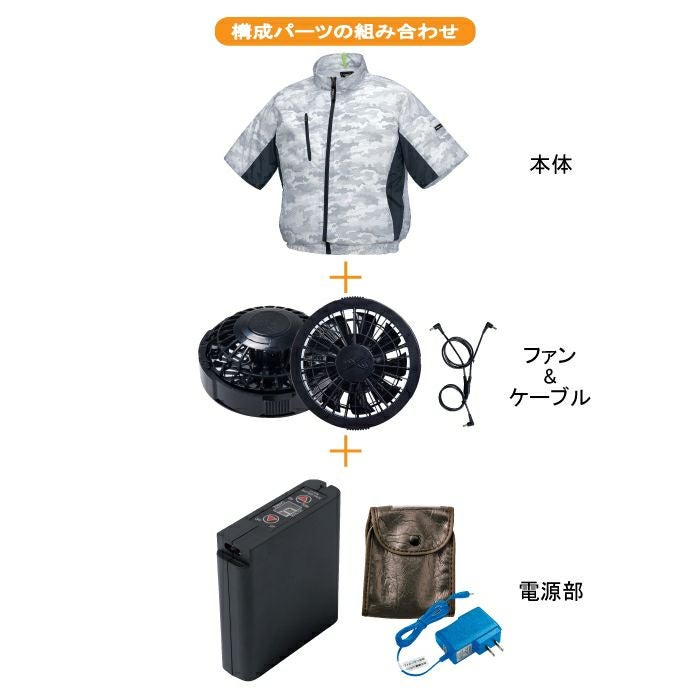 空調服 電動 ファン対応 春夏用 ジーベック 作業服 作業着 XE98006S 迷彩半袖ブルゾンファンとバッテリセット SS-5L 空調服 作業服 作業着 春夏用