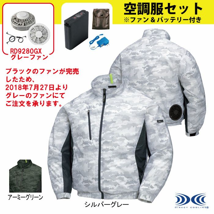 空調服 ジーベック XEBEC 作業服 XE98005S 迷彩長袖ブルゾンファンとブルゾンセット SS-5L 作業着 春夏用 熱中症 レジャー アウトドア スポーツ