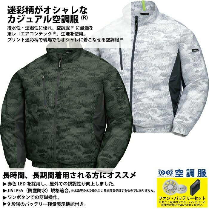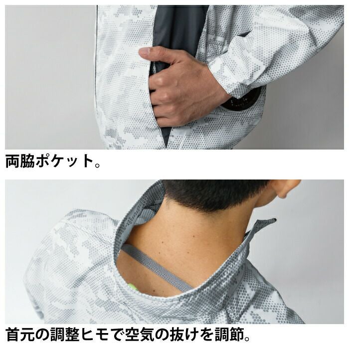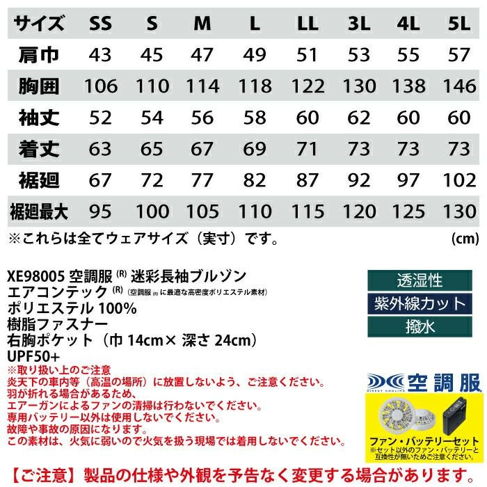 空調服 電動ファン 作業服 XEBEC 空調服 電動 ファン対応 春夏用 ジーベック 作業服 作業着 XE98005setR3-02(SP01GX) 空調服迷彩長袖ブルゾン バッテリとファンのセット SS-5L