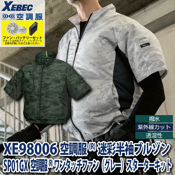 空調服 電動ファン 作業服 XEBEC 空調服 電動 ファン対応 春夏用 ジーベック 作業服 作業着 XE98006setR3-02(SP01GX) 空調服迷彩半袖ブルゾン バッテリとファンのセット SS-5L