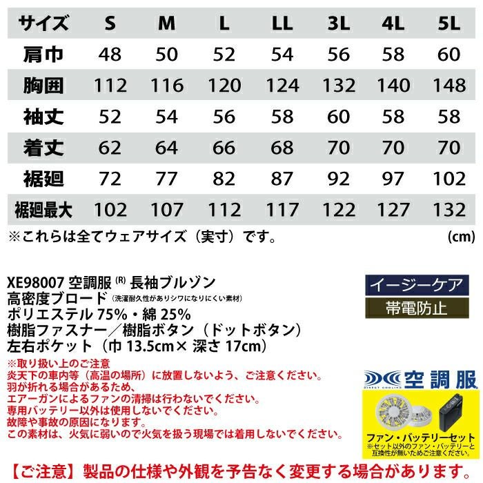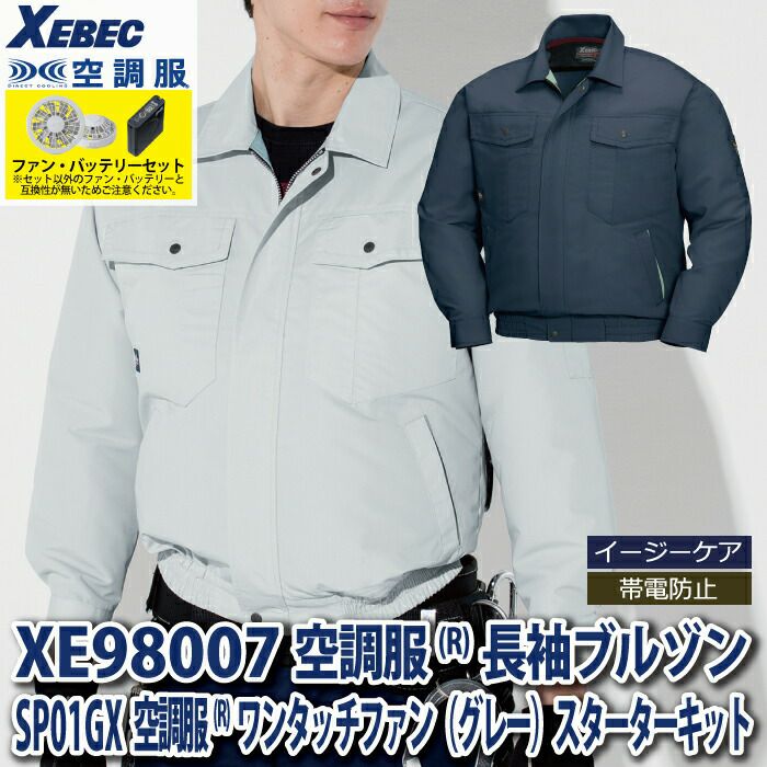 空調服 電動ファン 作業服 XEBEC 空調服 電動 ファン対応 春夏用 ジーベック 作業服 作業着 XE98007setR3-02(SP01GX) 空調服長袖ブルゾン バッテリとファンのセット S-5L
