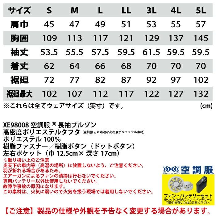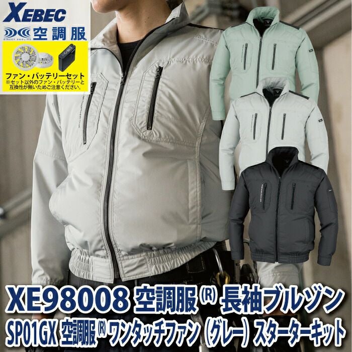空調服 電動ファン 作業服 XEBEC 空調服 電動 ファン対応 春夏用 ジーベック 作業服 作業着 XE98008setR3-02(SP01GX) 空調服長袖ブルゾン バッテリとファンのセット S-5L