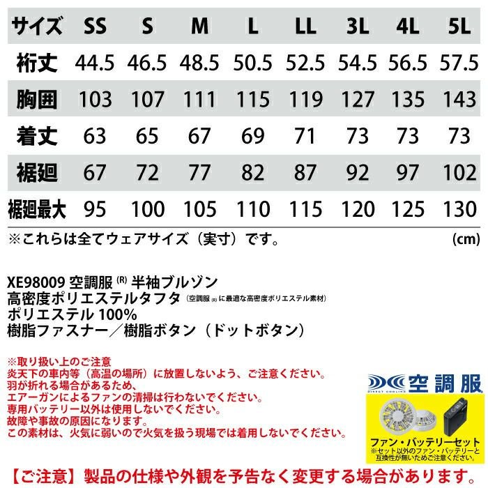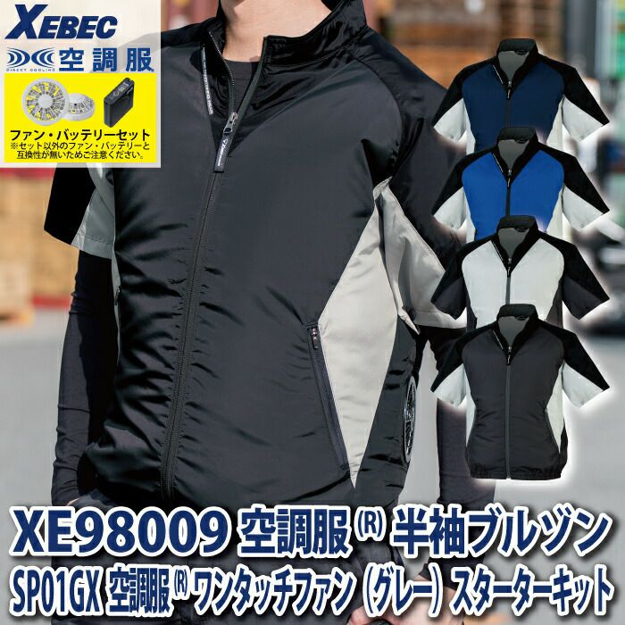 空調服 電動ファン 作業服 XEBEC 空調服 電動 ファン対応 春夏用 ジーベック 作業服 作業着 XE98009setR3-02(SP01GX) 空調服半袖ブルゾン バッテリとファンのセット SS-5L