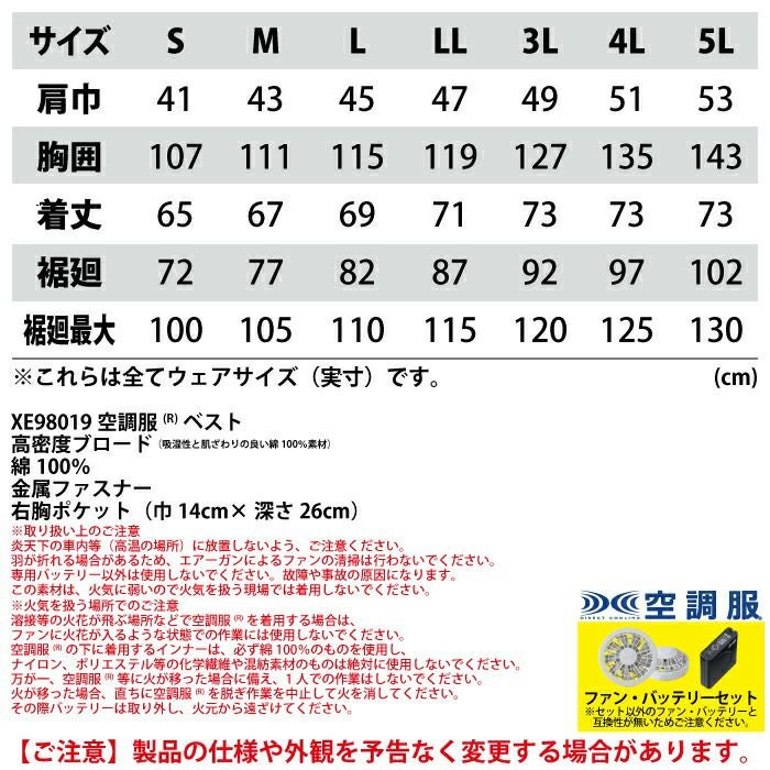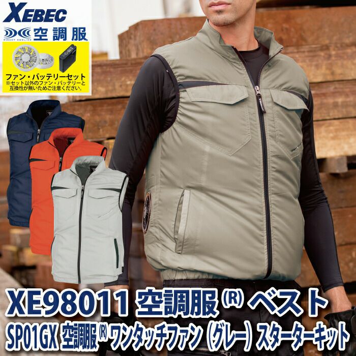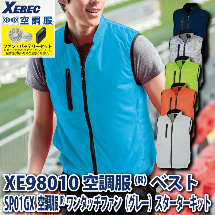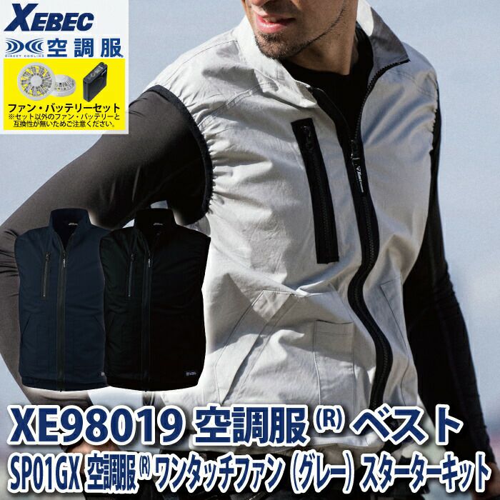 空調服 電動ファン 作業服 XEBEC 空調服 電動 ファン対応 春夏用 ジーベック 作業服 作業着 XE98014setR3-02(SP01GX) 空調服制電ベスト バッテリとファンのセット S-5L