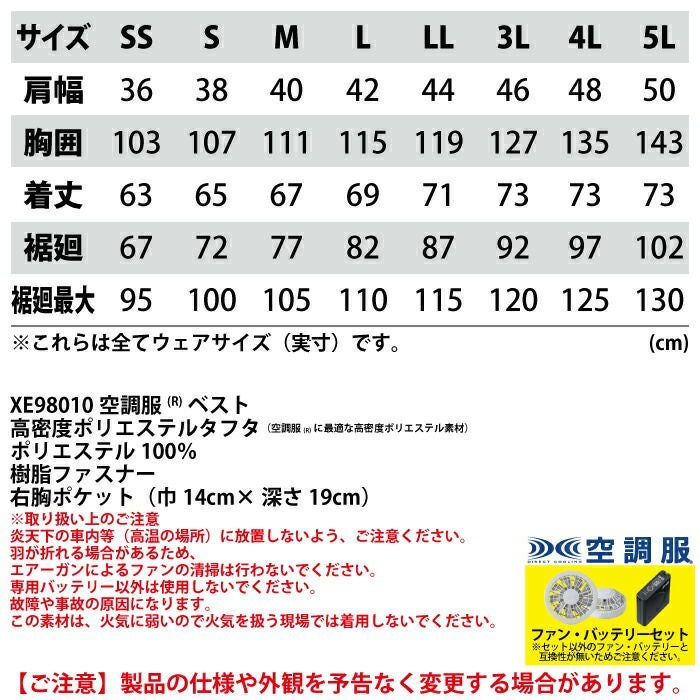 空調服 電動ファン 作業服 XEBEC 空調服 電動 ファン対応 春夏用 ジーベック 作業服 作業着 XE98010setR3-02(SP01GX) 空調服ベスト バッテリとファンのセット SS-5L