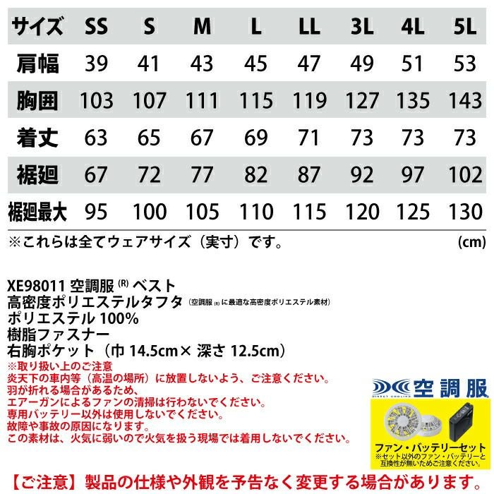 空調服 電動ファン 作業服 XEBEC 空調服 電動 ファン対応 春夏用 ジーベック 作業服 作業着 XE98011setR3-02(SP01GX) 空調服ベスト バッテリとファンのセット SS-5L