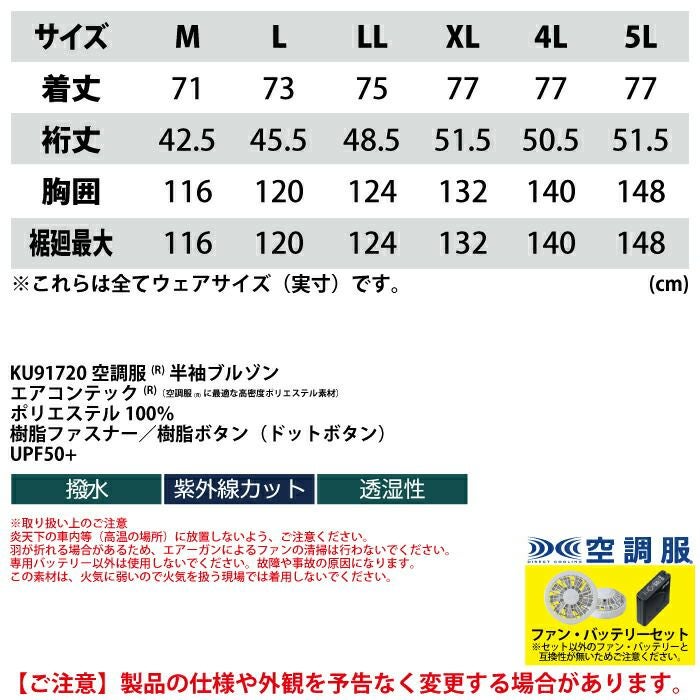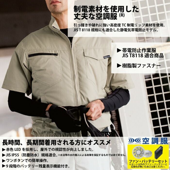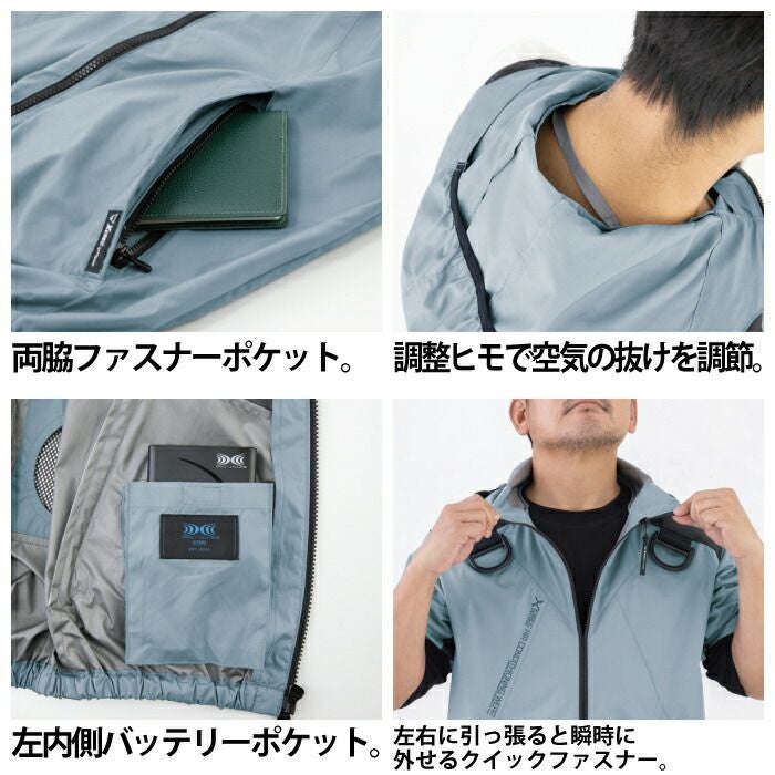 空調服 電動ファン 作業服 XEBEC 空調服 電動 ファン対応 春夏用 ジーベック 作業服 作業着 KU91720XsetR3-02(SP01GX) 空調服半袖ブルゾン バッテリとファンのセット M-5L