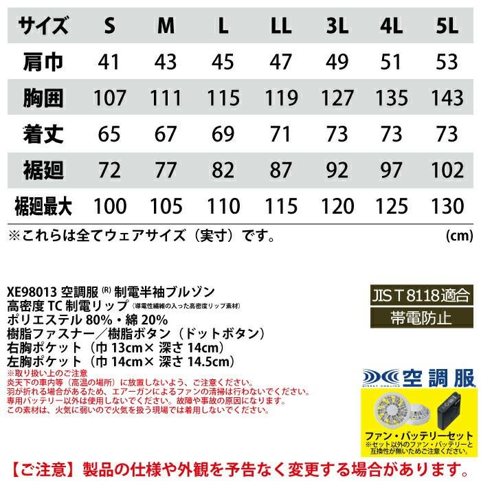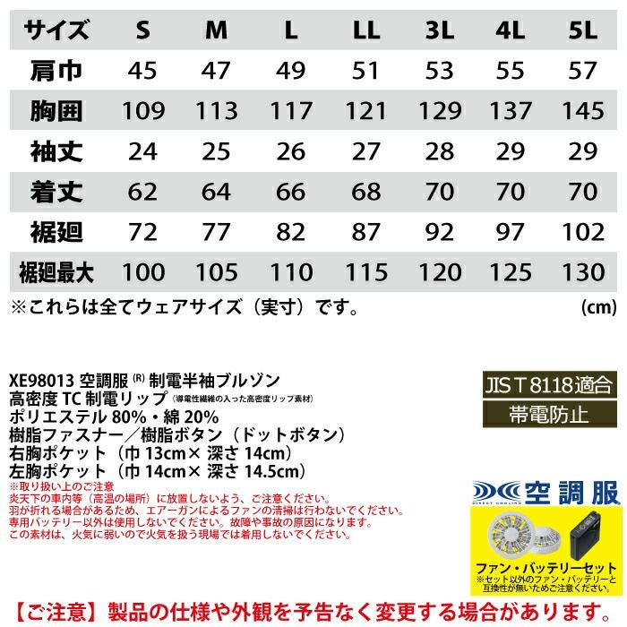 空調服 電動ファン 作業服 XEBEC 空調服 電動 ファン対応 春夏用 ジーベック 作業服 作業着 XE98013setR3-02(SP01GX) 空調服制電半袖ブルゾン バッテリとファンのセット S-5L