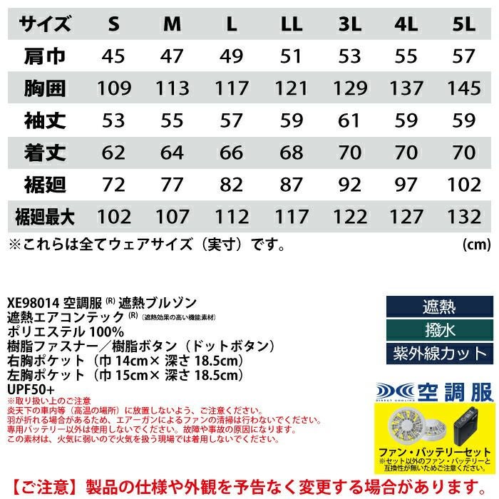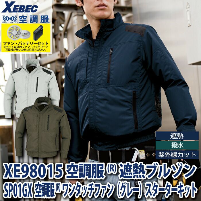 空調服 電動ファン 作業服 XEBEC 空調服 電動 ファン対応 春夏用 ジーベック 作業服 作業着 XE98015setR3-02(SP01GX) 空調服遮熱ブルゾン バッテリとファンのセット S-5L