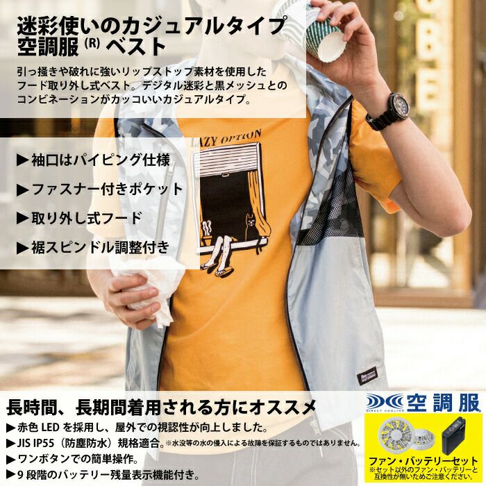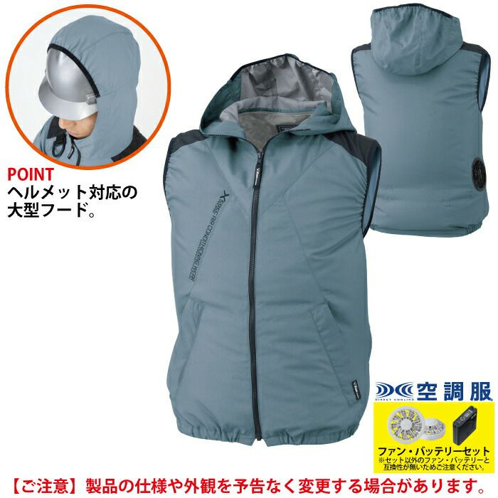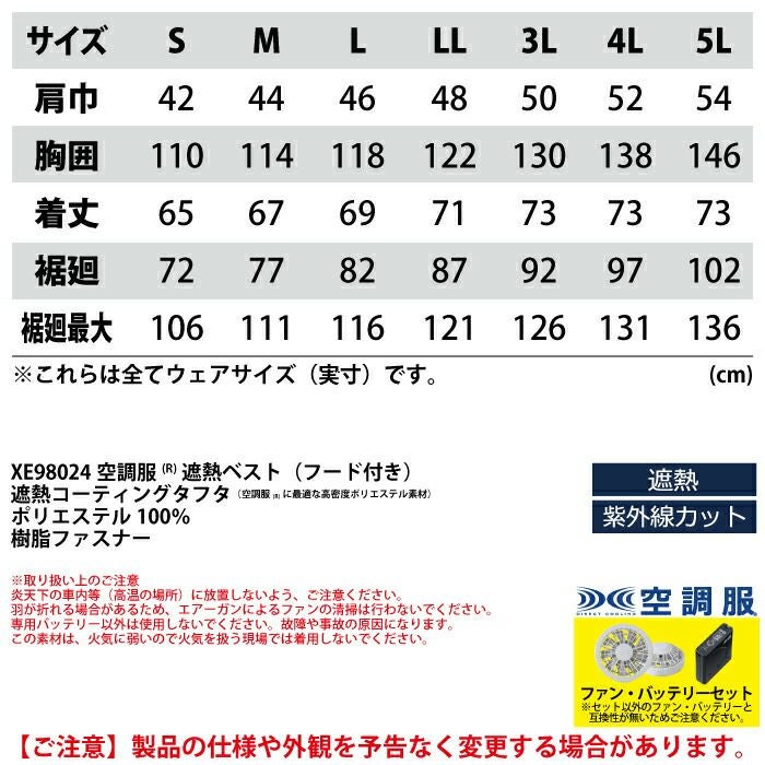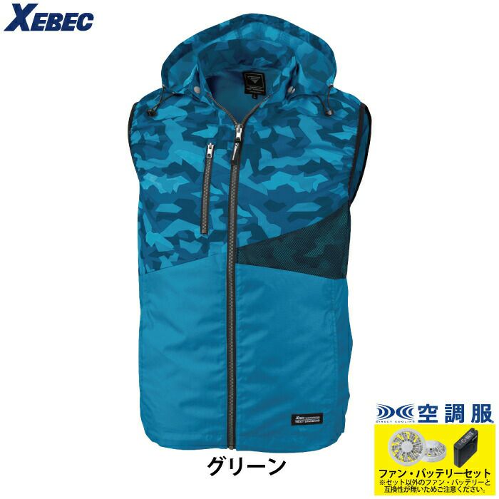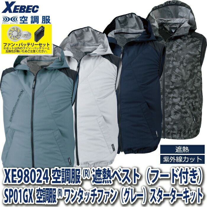 空調服 電動ファン 作業服 XEBEC 空調服 電動 ファン対応 春夏用 ジーベック 作業服 作業着 XE98024setR3-02(SP01GX) 空調服遮熱ベスト(フード付き) バッテリとファンのセット S-LL