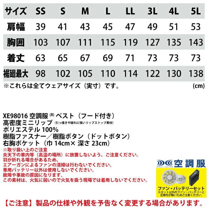 空調服 ジーベック XEBEC 作業服 作業着 空調服 ジーベック XEBEC 作業服 XE98029 空調服ベスト(フード付き) 3L 作業着 春夏用 熱中症 レジャー アウトドア スポーツ