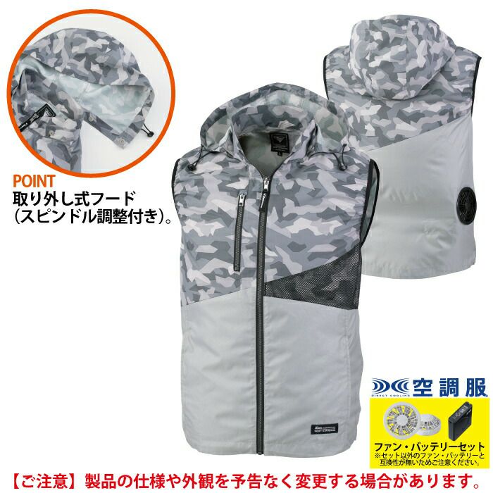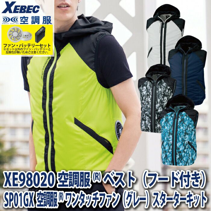空調服 電動ファン 作業服 XEBEC 空調服 電動 ファン対応 春夏用 ジーベック 作業服 作業着 XE98020setR3-02(SP01GX) 空調服ベスト(フード付き) バッテリとファンのセット SS-LL