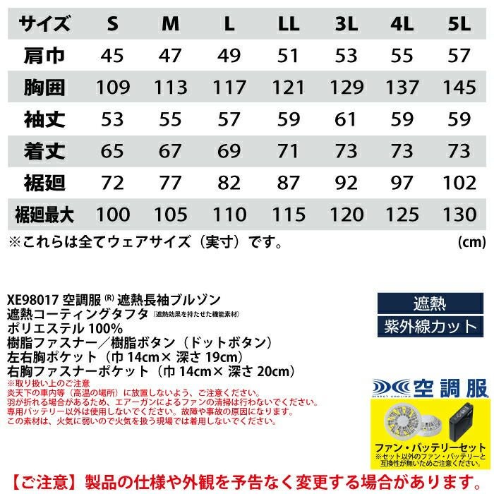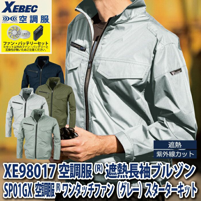 空調服 電動ファン 作業服 XEBEC 空調服 電動 ファン対応 春夏用 ジーベック 作業服 作業着 XE98017setR3-02(SP01GX) 空調服遮熱長袖ブルゾン バッテリとファンのセット S-LL