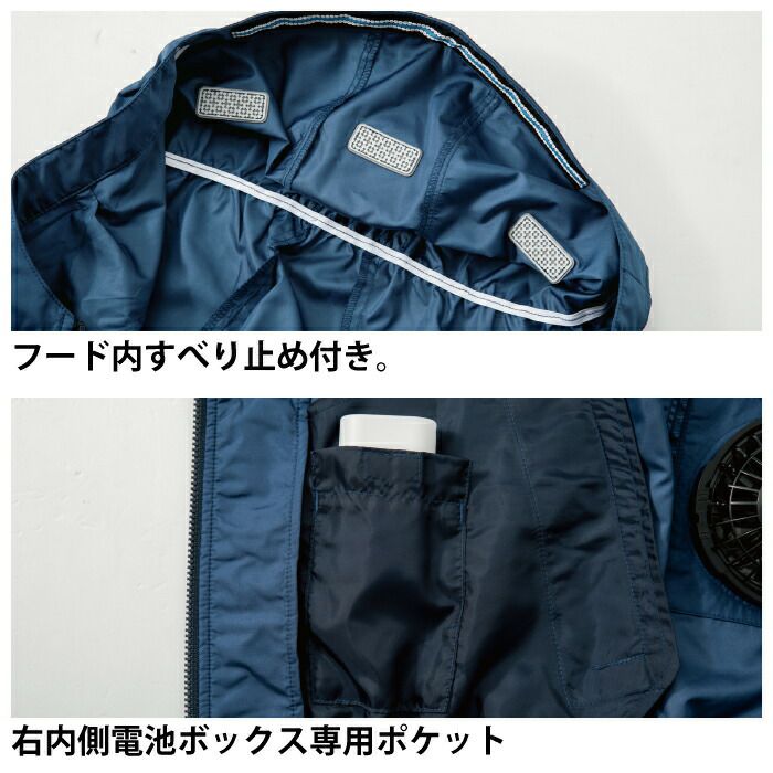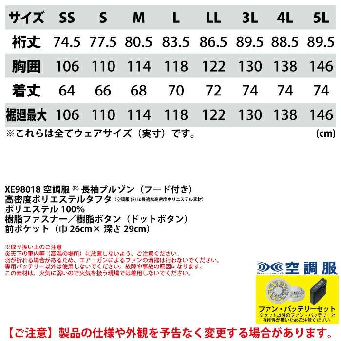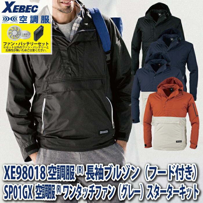空調服 電動ファン 作業服 XEBEC 空調服 電動 ファン対応 春夏用 ジーベック 作業服 作業着 XE98018setR3-02(SP01GX) 空調服長袖ブルゾン(フード付き) バッテリとファンのセット SS-LL