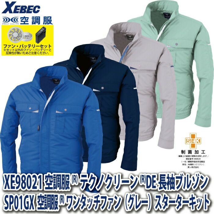 空調服 電動ファン 作業服 XEBEC 空調服 電動 ファン対応 春夏用 ジーベック 作業服 作業着 XE98021setR3-02(SP01GX) テクノクリーンDE空調服長袖ブルゾン バッテリとファンのセット S-LL