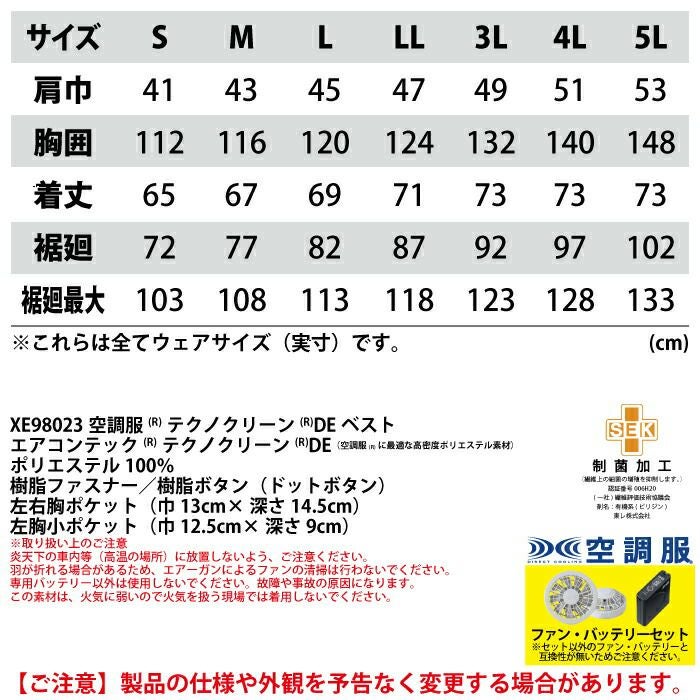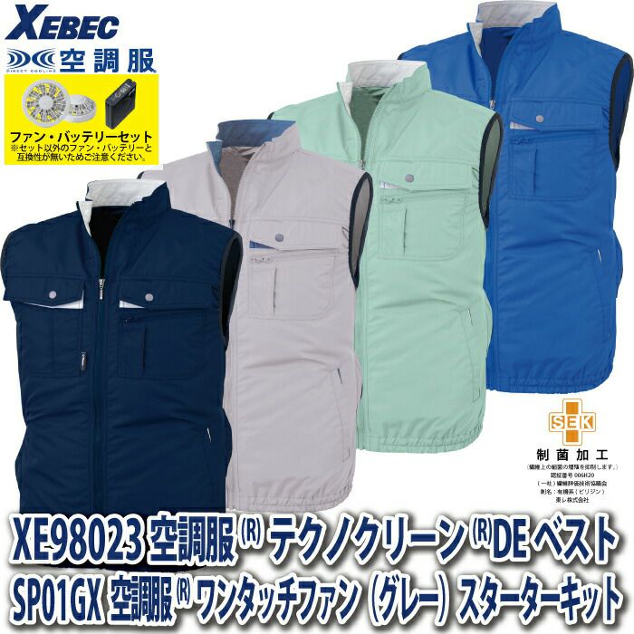 空調服 電動ファン 作業服 XEBEC 空調服 電動 ファン対応 春夏用 ジーベック 作業服 作業着 XE98023setR3-02(SP01GX) テクノクリーンDE空調服ベスト バッテリとファンのセット S-LL