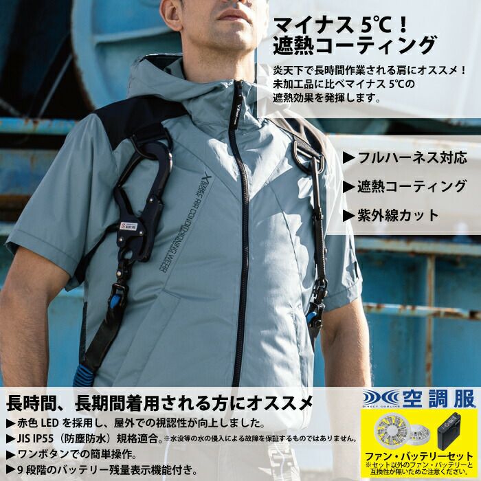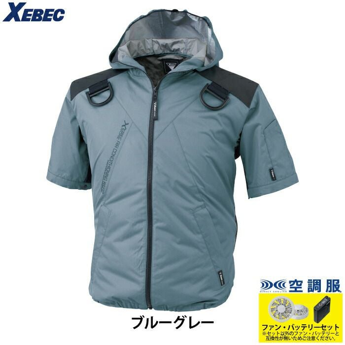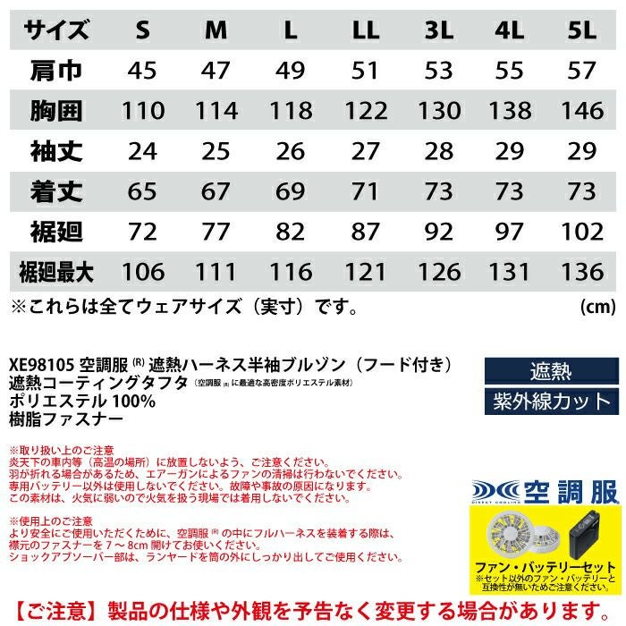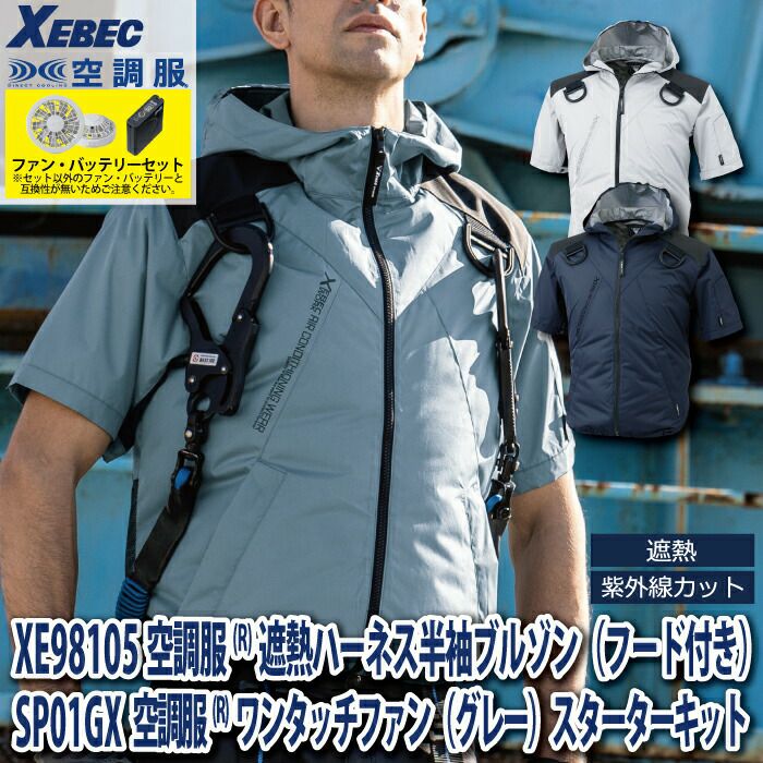 空調服 電動ファン 作業服 XEBEC 空調服 電動 ファン対応 春夏用 ジーベック 作業服 作業着 XE98105setR3-02(SP01GX) 空調服遮熱ハーネス半袖ブルゾン(フード付き) バッテリとファンのセット S-LL