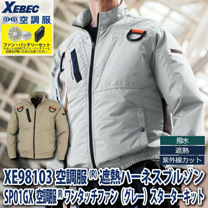 空調服 電動ファン 作業服 XEBEC 空調服 電動 ファン対応 春夏用 ジーベック 作業服 作業着 XE98103setR3-02(SP01GX) 空調服遮熱ハーネスブルゾン バッテリとファンのセット S-5L
