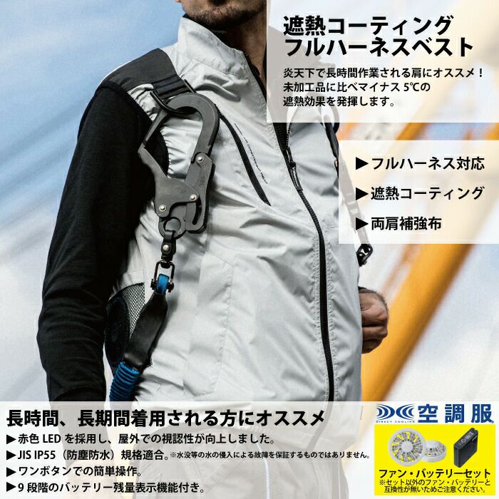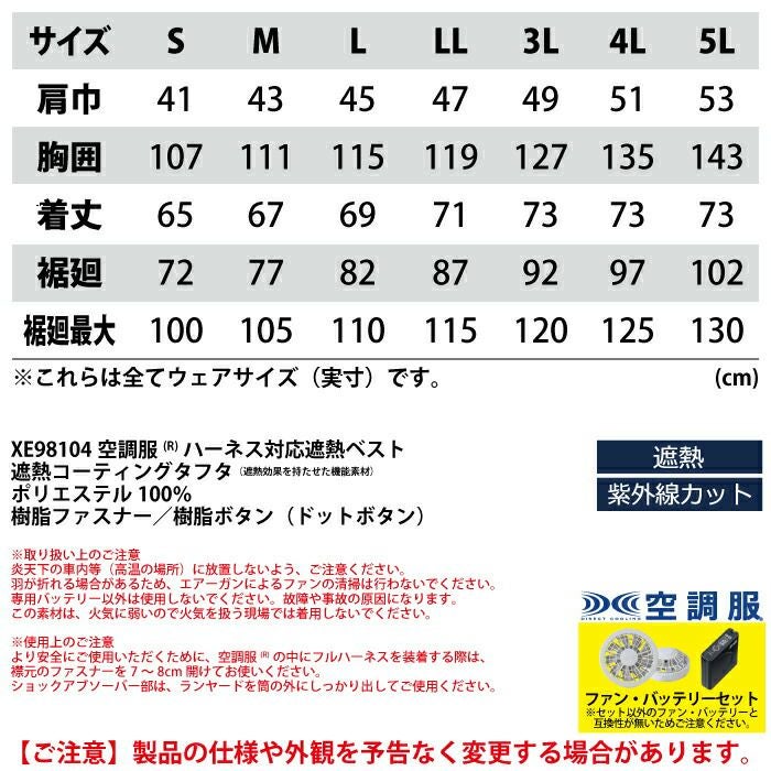 空調服 電動ファン 作業服 XEBEC 空調服 電動 ファン対応 春夏用 ジーベック 作業服 作業着 XE98104setR3-02(SP01GX) 空調服遮熱ハーネスベスト バッテリとファンのセット S-LL