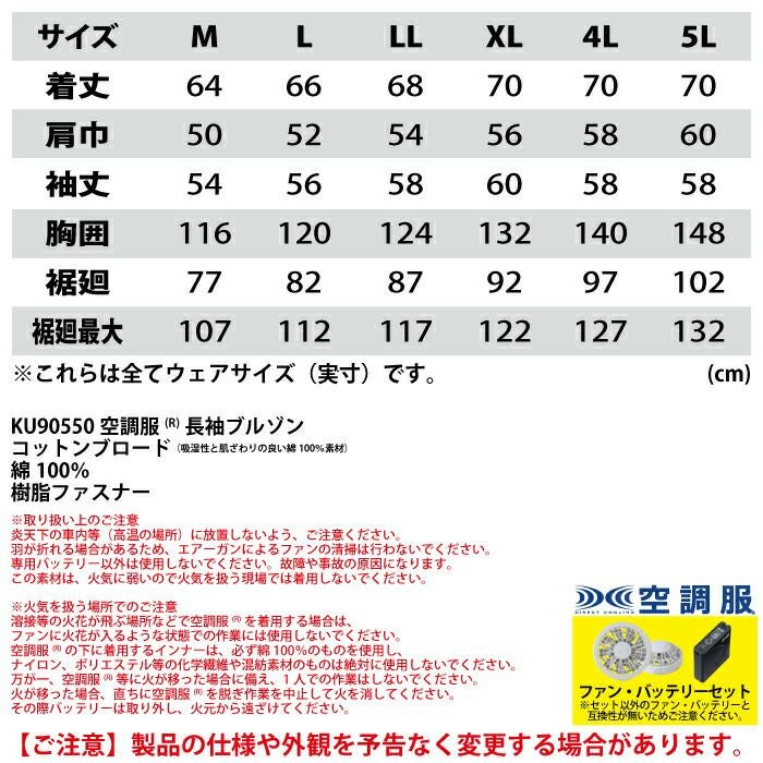ジーベック 作業服 作業着 KU90550XsetR3-02(SP01GX) 長袖ワークブルゾンファン無し バッテリとファンのセット M-5L