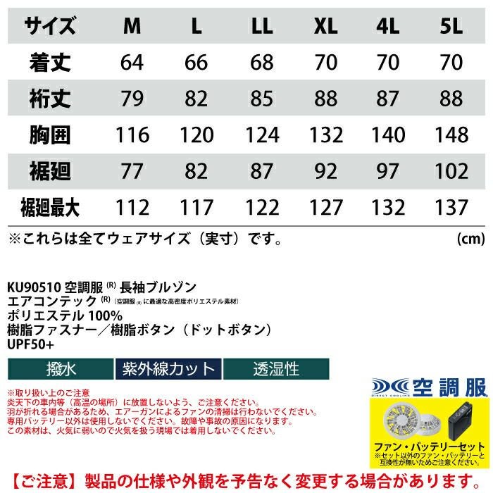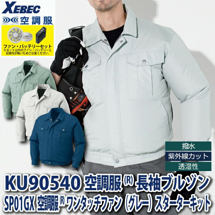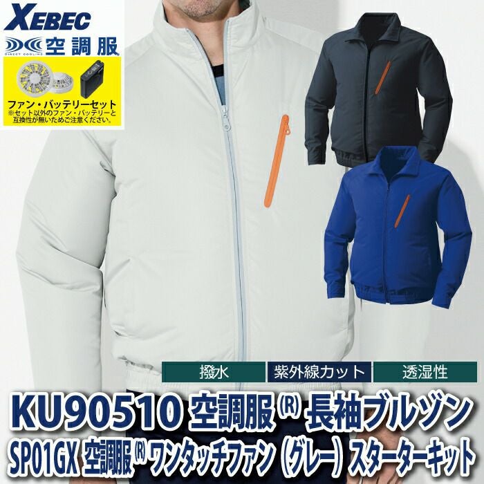 空調服 電動ファン 作業服 XEBEC 空調服 電動 ファン対応 春夏用 ジーベック 作業服 作業着 KU90510XsetR3-02(SP01GX) 空調服長袖ブルゾン バッテリとファンのセット M-5L