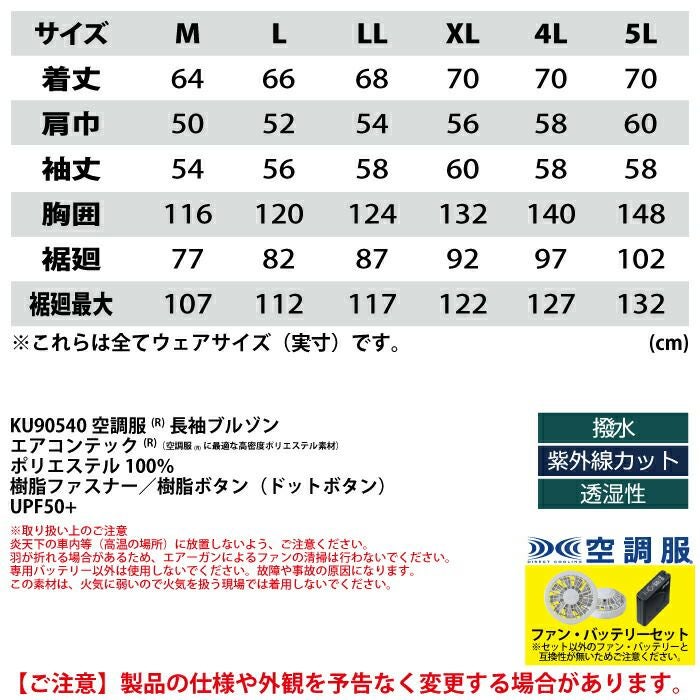 ジーベック 作業服 作業着 KU90540XsetR3-02(SP01GX) 長袖ワークブルゾンファン無し バッテリとファンのセット M-5L
