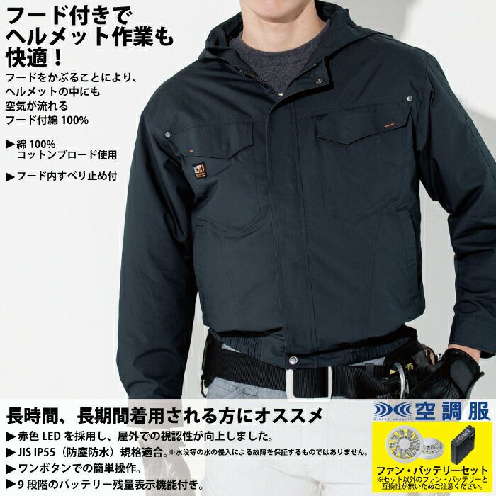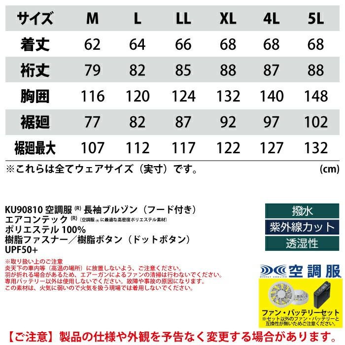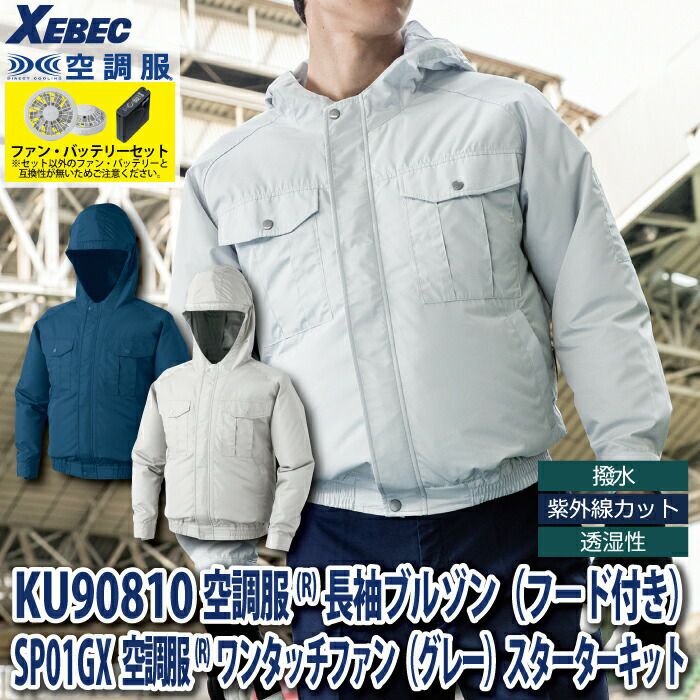 空調服 電動ファン 作業服 XEBEC 空調服 電動 ファン対応 春夏用 ジーベック 作業服 作業着 KU90810XsetR3-02(SP01GX) 空調服長袖ブルゾン(フード付き) バッテリとファンのセット M-5L