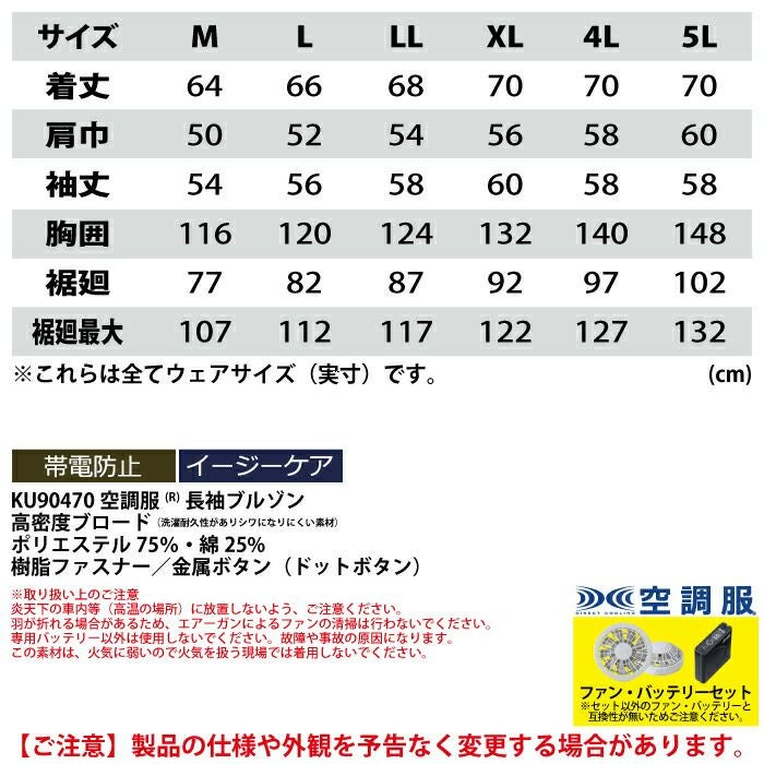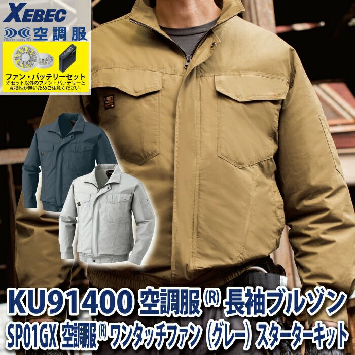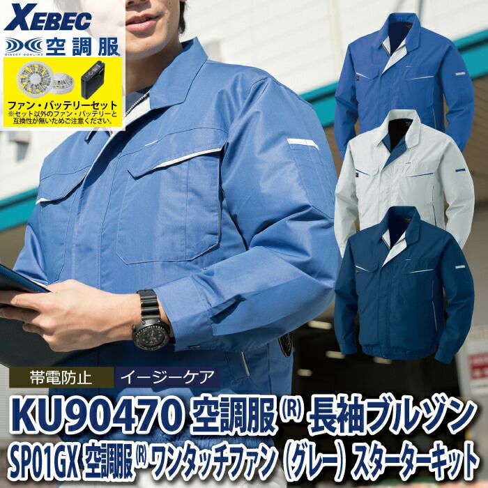空調服 電動ファン 作業服 XEBEC 空調服 電動 ファン対応 春夏用 ジーベック 作業服 作業着 KU90470XsetR3-02(SP01GX) 空調服長袖ブルゾン バッテリとファンのセット M-5L