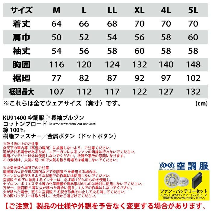 ジーベック 作業服 作業着 KU91400XsetR3-02(SP01GX) 長袖ワークブルゾンファン無し バッテリとファンのセット M-5L