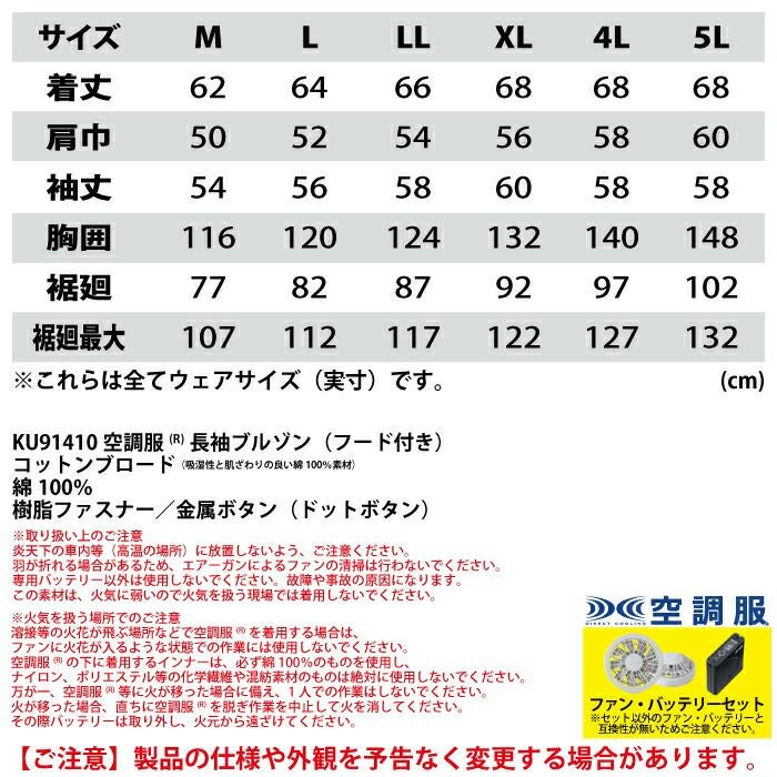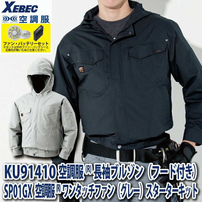 空調服 電動ファン 作業服 XEBEC 空調服 電動 ファン対応 春夏用 ジーベック 作業服 作業着 KU91410XsetR3-02(SP01GX) 空調服長袖ブルゾン(フード付き) バッテリとファンのセット M-5L
