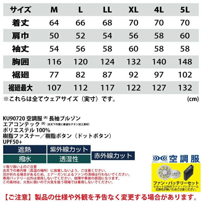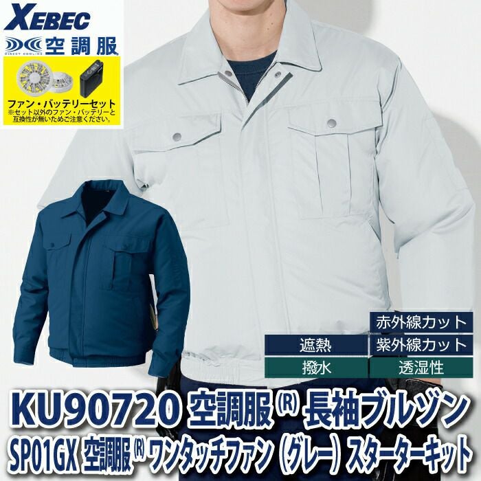 空調服 電動ファン 作業服 XEBEC 空調服 電動 ファン対応 春夏用 ジーベック 作業服 作業着 KU90720XsetR3-02(SP01GX)X 空調服長袖ブルゾン バッテリとファンのセット M-5L