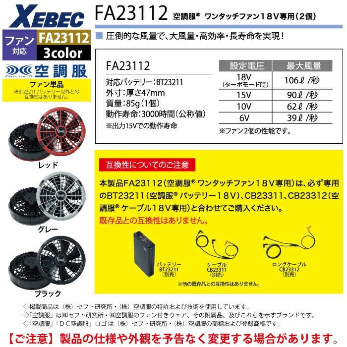 空調服 ジーベック XEBEC 作業服 作業着 空調服 ジーベック XEBEC 作業服 FA23112 空調服ワンタッチファン18V専用(2個) F 作業着 春夏用 熱中症 レジャー アウトドア スポーツ