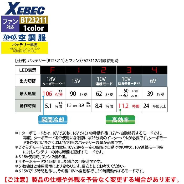 空調服 ジーベック XEBEC 作業服 作業着 空調服 ジーベック XEBEC 作業服 BT23211 空調服バッテリー18V F 作業着 春夏用 熱中症 レジャー アウトドア スポーツ