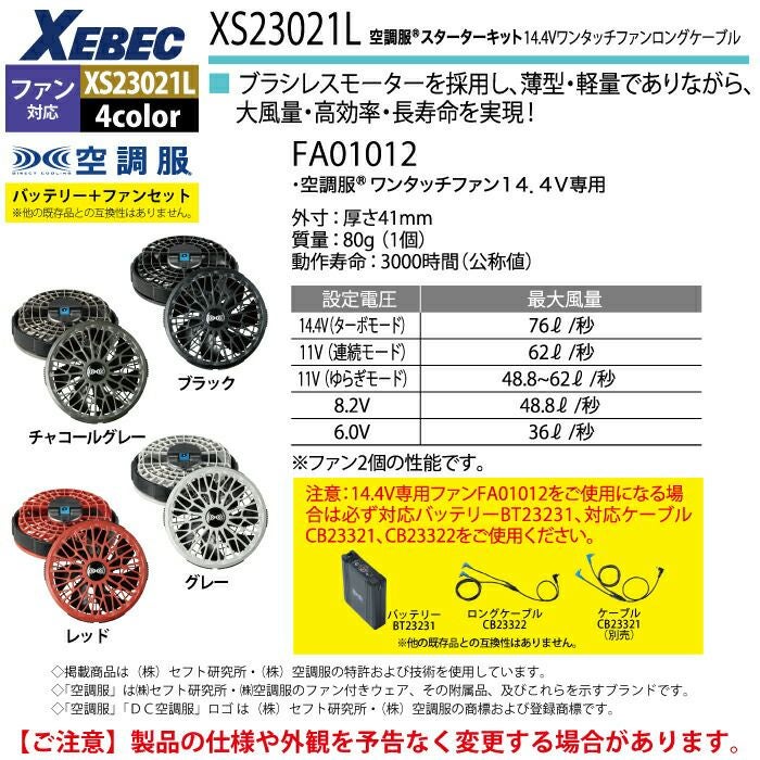 空調服 ジーベック XEBEC 作業服 作業着 空調服 ジーベック XEBEC 作業服 XS23021L 空調服スターターキット14.4Vワンタッチファンロングケーブル F 作業着 春夏用 熱中症 レジャー アウトドア スポーツ