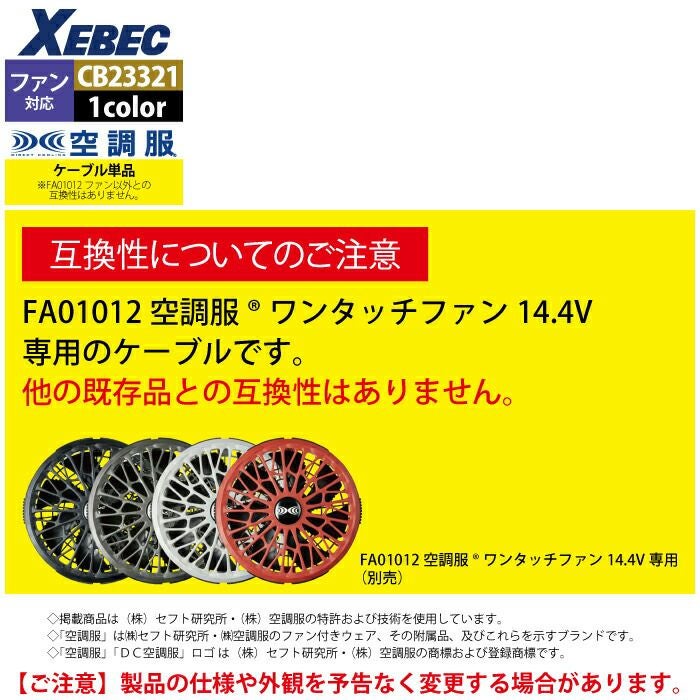 空調服 ジーベック XEBEC 作業服 作業着 空調服 ジーベック XEBEC 作業服 CB23321 空調服ケーブル14.4V専用 F 作業着 春夏用 熱中症 レジャー アウトドア スポーツ