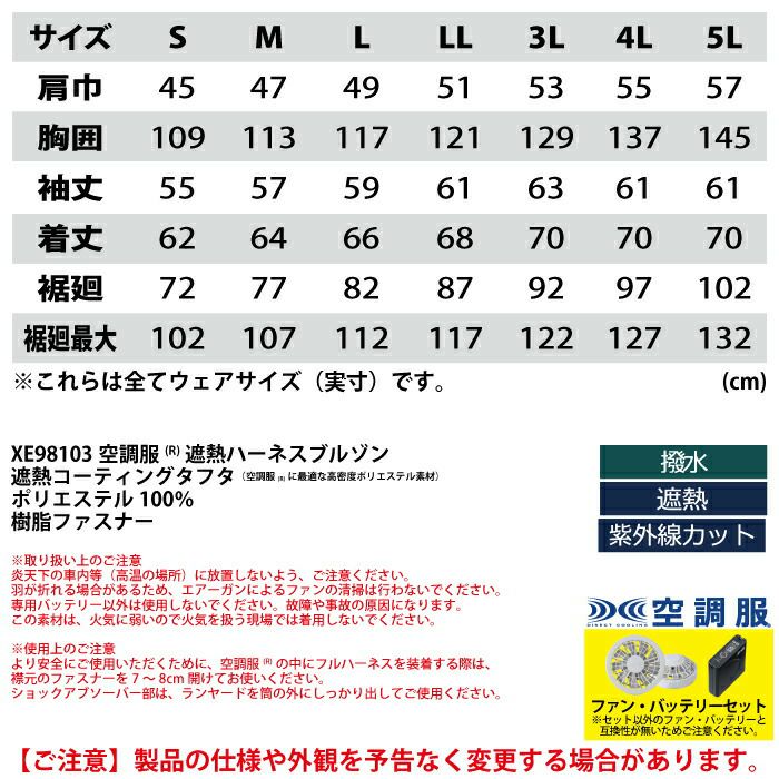 空調服 電動ファン 作業服 XEBEC 空調服 電動 ファン対応 春夏用 ジーベック 作業服 作業着 XE98103setR3-02(SP01GX) 空調服遮熱ハーネスブルゾン バッテリとファンのセット S-5L