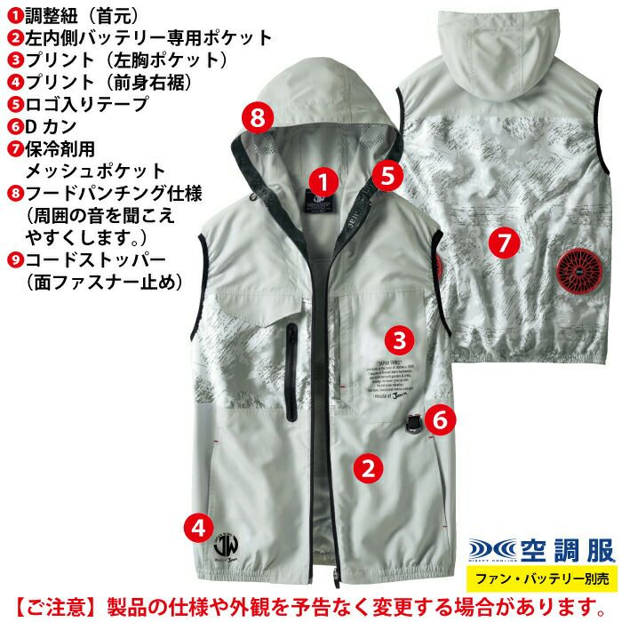 空調服 自重堂 作業服 作業着 空調服 自重堂 作業服 54150 空調服ベスト(フード付) SS-LL 作業着 春夏用 熱中症 レジャー アウトドア スポーツ