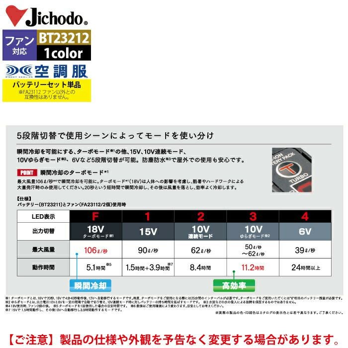 空調服 自重堂 作業服 作業着 空調服 自重堂 作業服 BT23212 空調服バッテリーセット18V F 作業着 春夏用 熱中症 レジャー アウトドア スポーツ