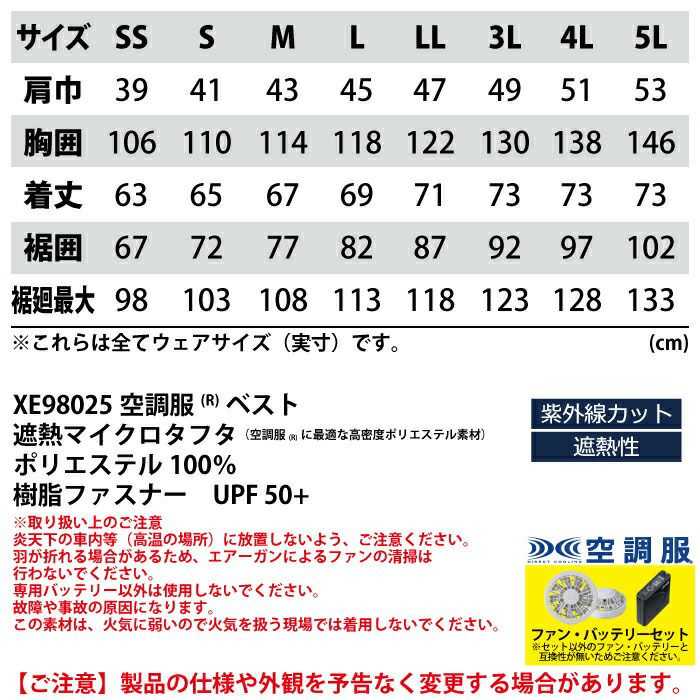 空調服 電動ファン 作業服 XEBEC 空調服 電動 ファン対応 春夏用 ジーベック 作業服 作業着 XE98025setR3-02(SP01GX) 空調服ベスト バッテリとファンのセット SS-LL