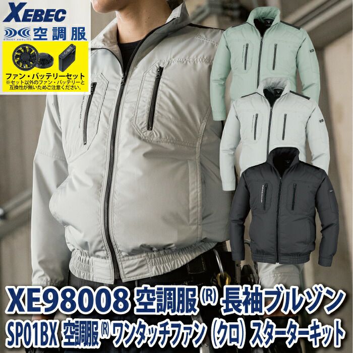 空調服 電動ファン 作業服 XEBEC 空調服 電動 ファン対応 春夏用 ジーベック 作業服 作業着 XE98008setR3-01(SP01BX) 空調服長袖ブルゾン バッテリとファンのセット S-5L