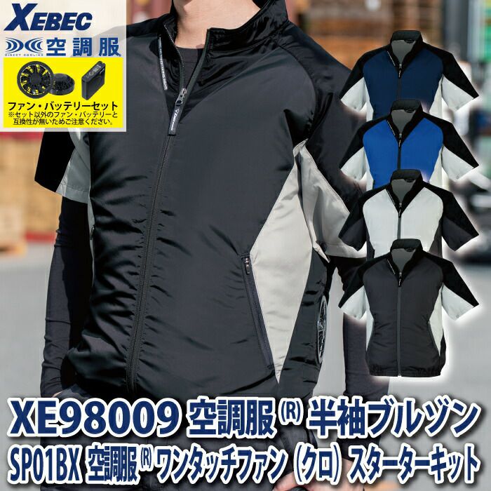 空調服 電動ファン 作業服 XEBEC 空調服 電動 ファン対応 春夏用 ジーベック 作業服 作業着 XE98009setR3-01(SP01BX) 空調服半袖ブルゾン バッテリとファンのセット SS-5L